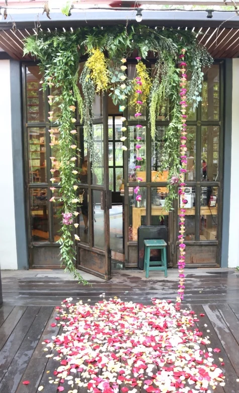 Our favourite part was creating the flower curtain with eustomas, carnations, roses, alstromerias and lots of foilage that enhanced and assimilated with the rustic surrounding. We really appreciate how eco-conscious the couple is. They wanted us to take a sustainable approach to the wedding and minimise wastage as much as possible.