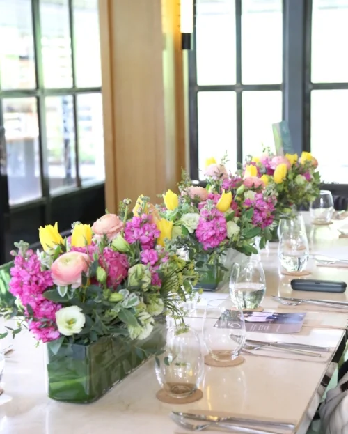 Among other measures, we also prolonged the life of our floral arrangements by providing vases that the couple and their guests could take home.